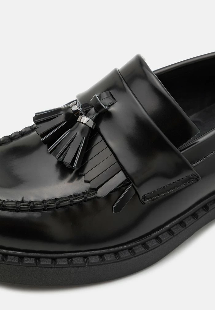 - Details: Moccasin seam, tassels